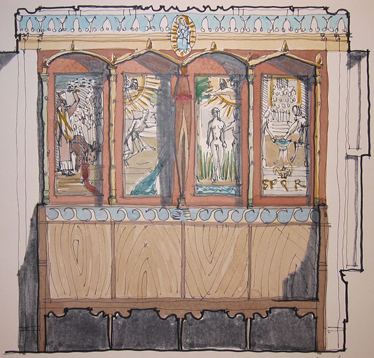 It has been a busy few months at the office with multiple back-to-back trips in just the last two weeks. Mr Heyer traveled first to New York City and then to Italy to meet in person with the artisans working on the decorative painting, mosaics, and marbles for St Charles Preparatory School's Mother of Mercy Chapel. Meanwhile, a group of students from Benedictine College's Department of Architecture came by for an office visit. The New York and Italy trip was immediately followed by a trip to the University of Notre Dame Architecture School's career fair.